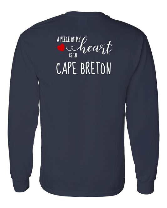 A piece of My heart in Cape Breton (Red Heart) Left Chest and Back Long Sleeve Tee