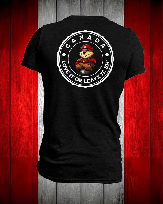 Canada Love it or Leave it eh! left chest and back Men's Stanfield's Tee