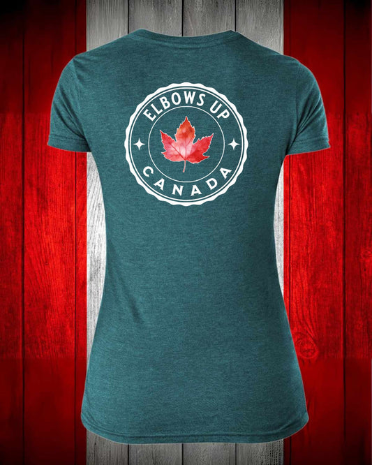 Elbows Up Leaf Left Chest And Full Back Women's V-neck Stanfield's Tee