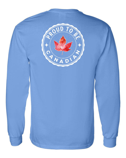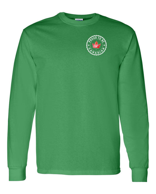 Proud to be Canadian Leaf Left Chest and Back Long Sleeve - Gildan Canada (sewn Internationally)