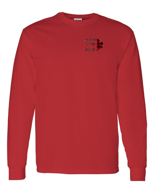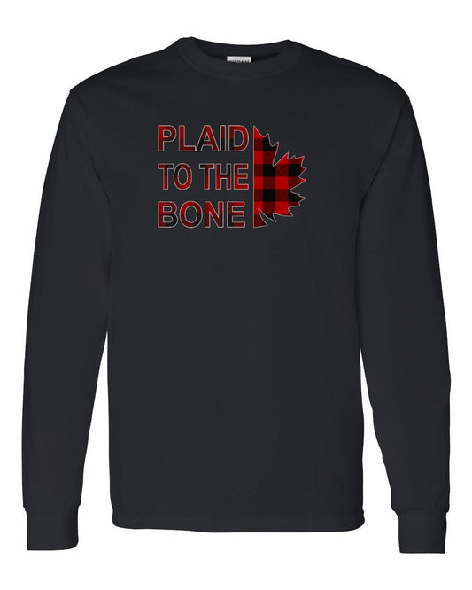 Plaid to the Bone Stacked Leaf Left Chest Long Sleeve - Gildan Canada (sewn Internationally)