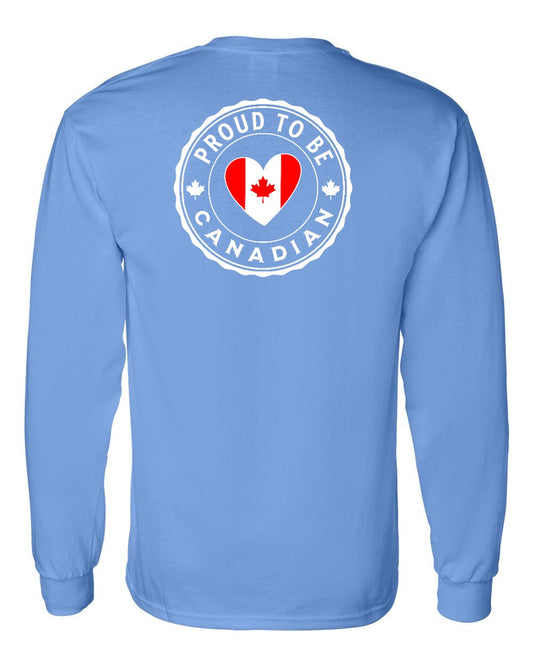 Proud to be Canadian Heart Flag Left Chest and Back Long Sleeve - Gildan Canada (sewn Internationally)