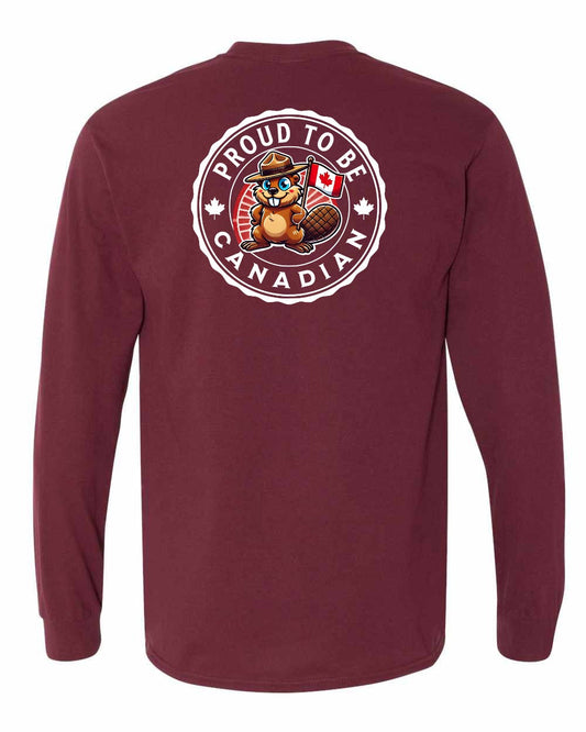 Proud to be Canadian Beaver Left Chest and Back Long Sleeve - Gildan Canada (sewn Internationally)