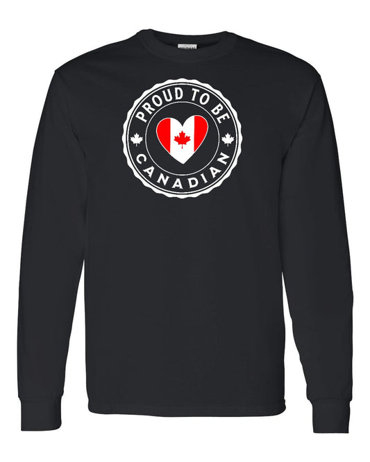 Proud to be Canadian Heart Flag Left Chest Long Sleeve - Gildan Canada (sewn Internationally)