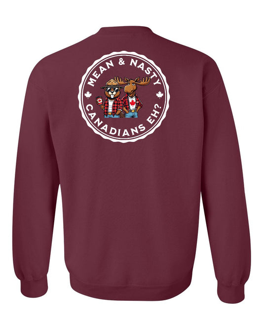 Mean & Nasty Canadians Eh! Left Chest and Back Crewneck - Gildan Canada (sewn Internationally)