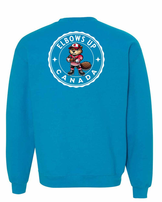 Elbows up Beaver Left Chest and Back Crewneck - Gildan Canada (sewn Internationally)