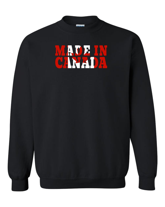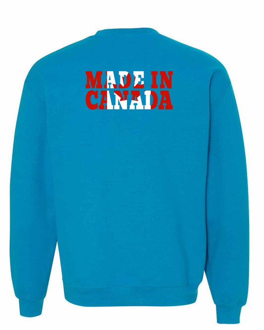 Made in Canada Flag Background Left Chest and Back Crewneck - Gildan Canada (sewn Internationally)