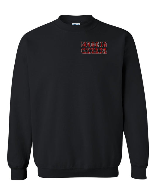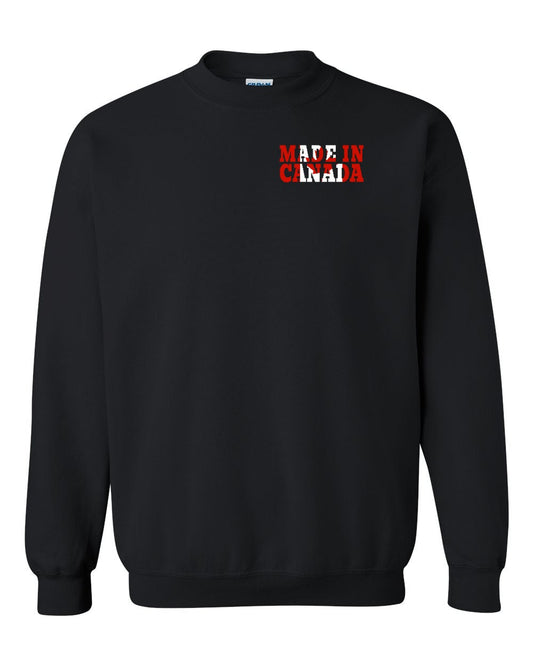 Made in Canada Flag Background Left Chest Crewneck - Gildan Canada (sewn Internationally)