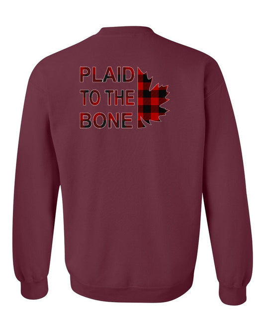 Plaid to the Bone Stacked Leaf Left Chest and Back Crewneck - Gildan Canada (sewn Internationally)