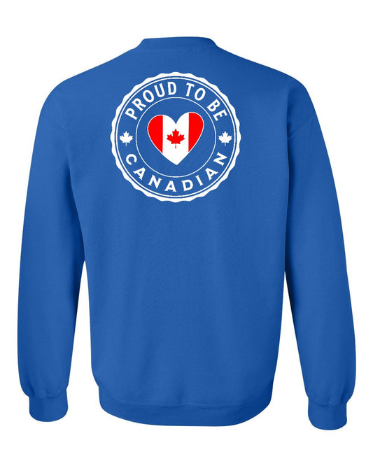 Proud to be Canadian Heart Flag Left Chest and Back Crewneck - Gildan Canada (sewn Internationally)