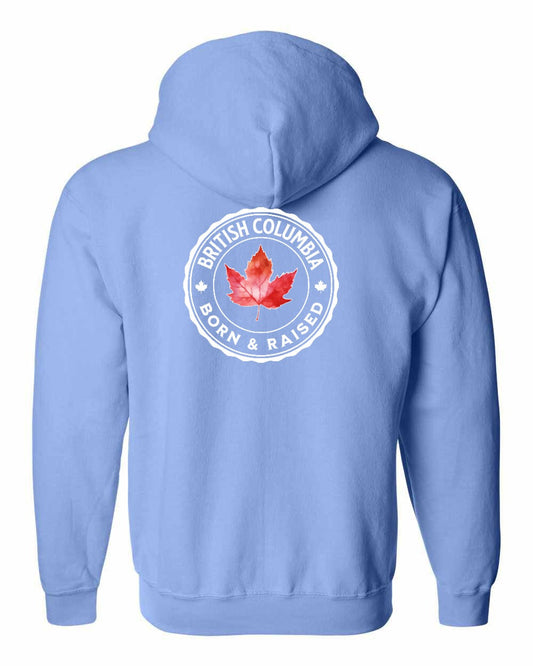 Born and Raised British Columbia Left Chest and Back Zip Hoodie - Gildan Canada (sewn Internationally)