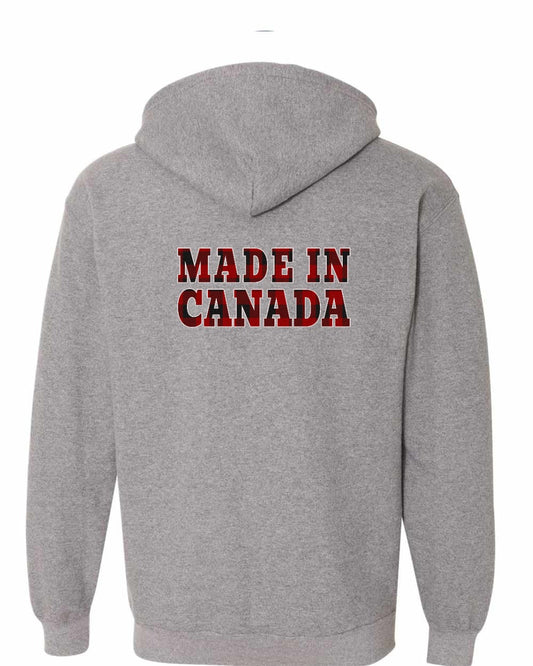 Made in Canada Plaid Background Left Chest and Back Zip Hoodie - Gildan Canada (sewn Internationally)