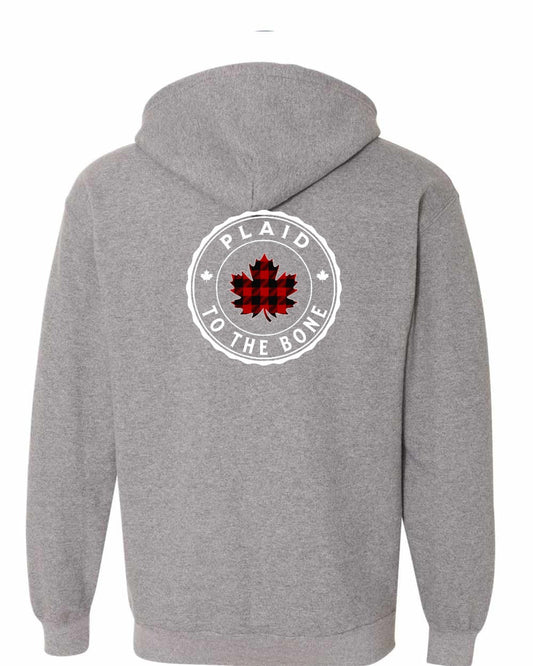 Plaid to the Bone Stacked Leaf Left Chest and Back Zip Hoodie - Gildan Canada (sewn Internationally)
