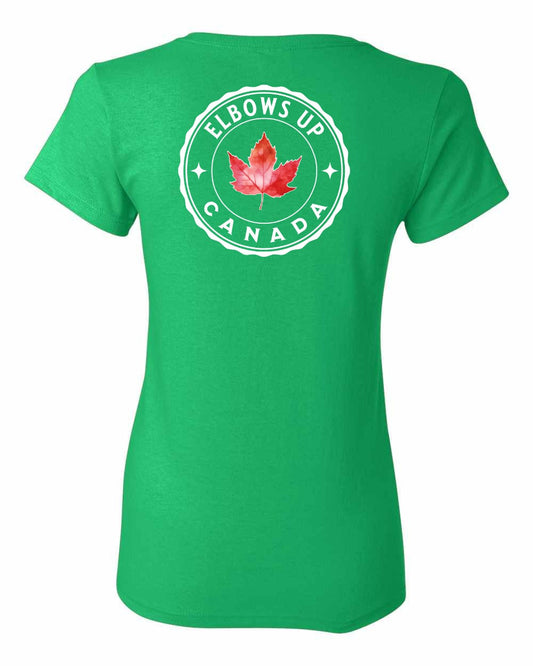 Elbows Up Leaf Left Chest and Back Women's Tee - Gildan Canada (sewn Internationally)