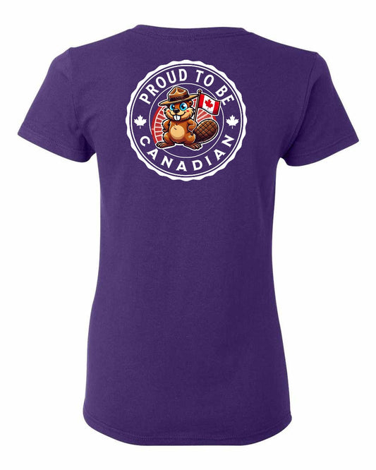 Proud to be Canadian Beaver Left Chest and Back Women's Tee - Gildan Canada (sewn Internationally)
