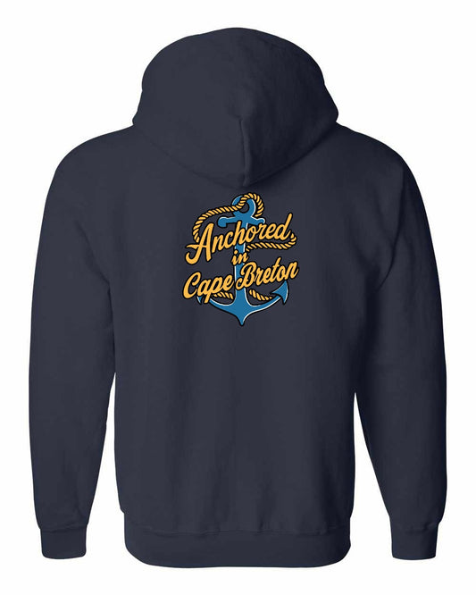 Anchored in Cape Breton (New Design) Left Chest and Back Zip Hoodie
