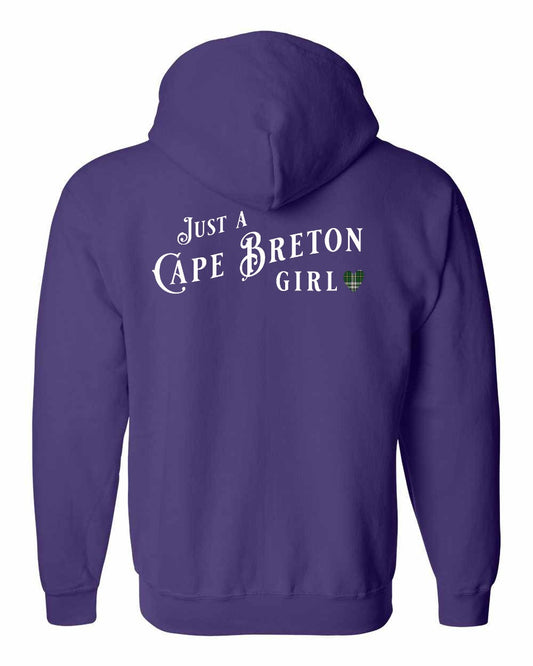 Just a Cape Breton Girl Tartan Left Chest and Back Zip Hoodie