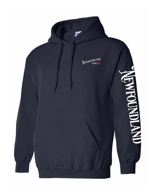 Newfoundland Girl Red Heart Left Chest and Sleeve Pullover Hoodie