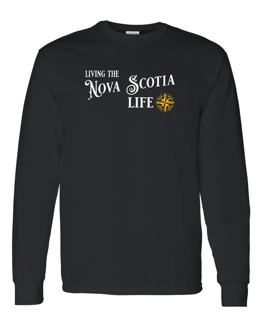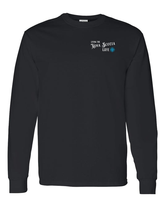 Living the Nova Scotia Life blue Left Chest and Back Long Sleeve Tee