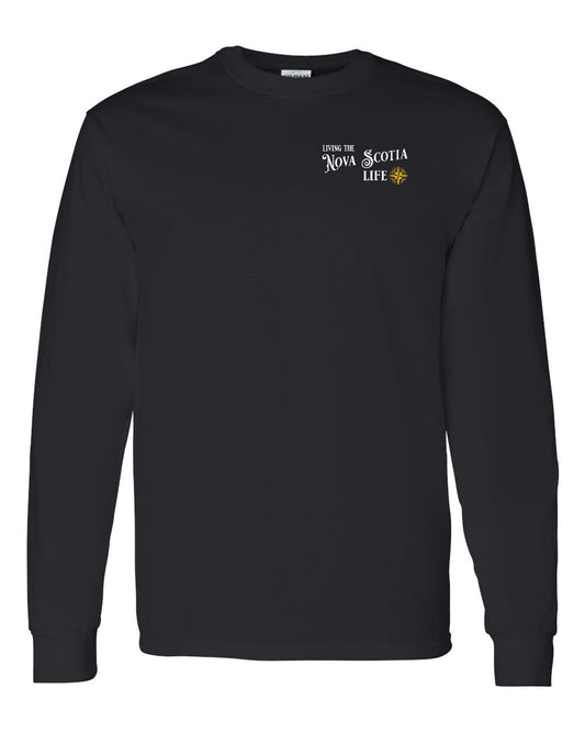 Made In Nova Scotia ( White Lettering) Left Chest and Back Long Sleeve Tee