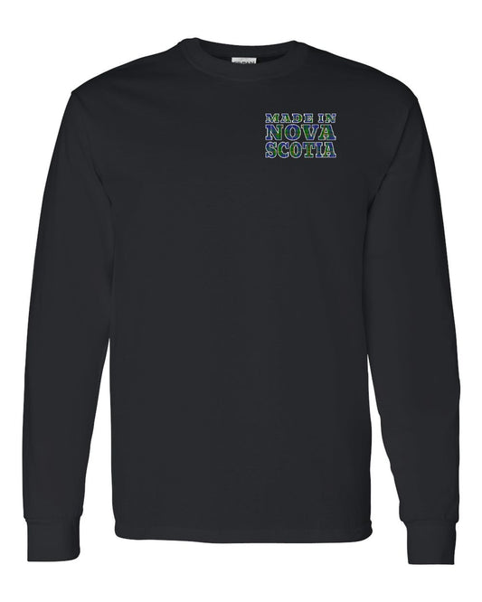Made In Nova Scotia ( Tartan Lettering) Left Chest and Back Long Sleeve Tee