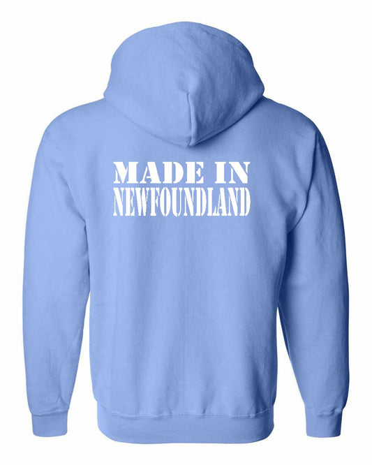 Made In Newfoundland ( White Lettering) Left Chest and Back Zip Hoodie