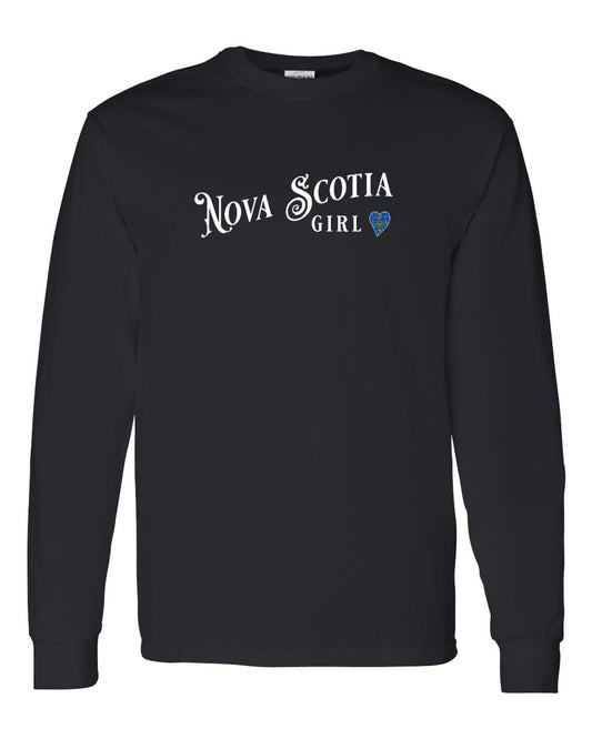 Nova Scotia Girl Tartan Heart Left Chest and Back Long Sleeve Tee