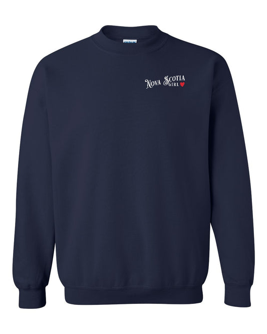 Nova Scotia Girl Red Heart Left Chest and Back crew-neck