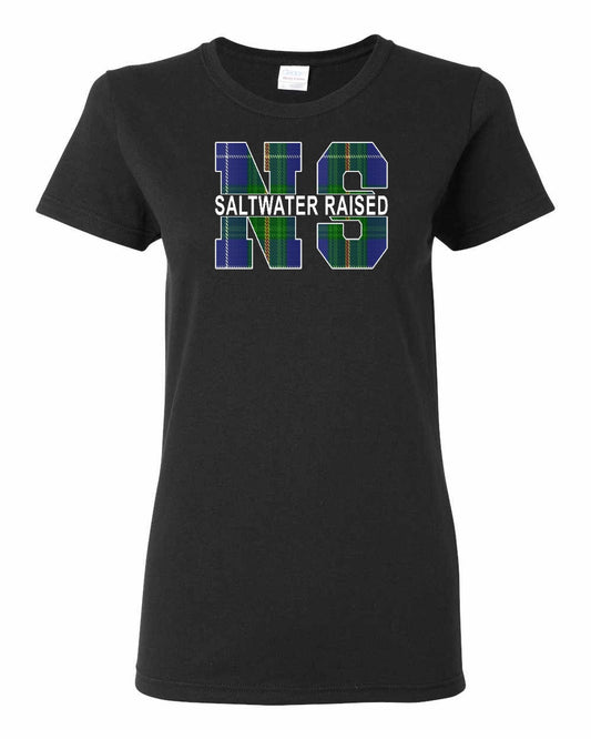 Nova Scotia Girl Tartan Heart Left Chest and Back womens-tee