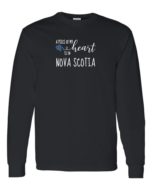 A piece of My heart in Nova Scotia (Red Heart) Left Chest and Back Long Sleeve Tee