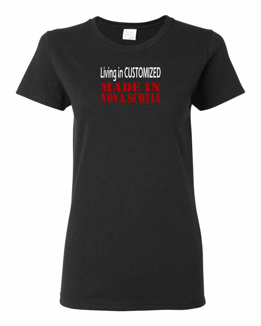 Living in Custom Made in Nova Scotia Left Chest and Back Women's Tee