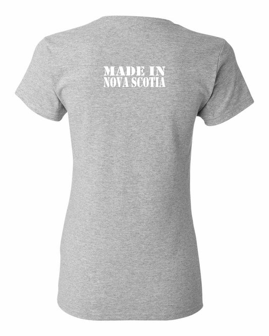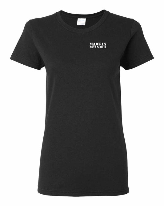 Made In Nova Scotia ( White Lettering) Left Chest and Back Women's Tee