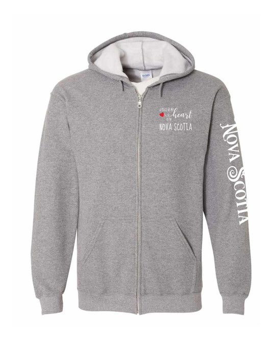 A piece of my heart is in Nova Scotia Left Chest and Sleeve Zip Hoodie
