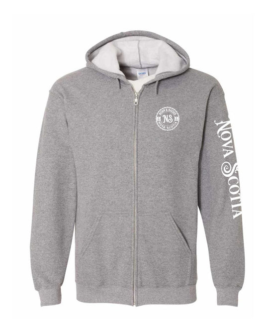 Made In Nova Scotia ( White Lettering) Left Chest and Back zip-hoodie