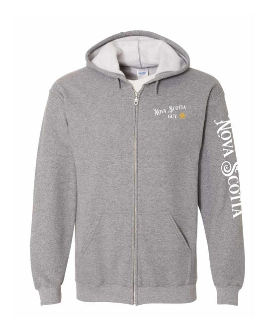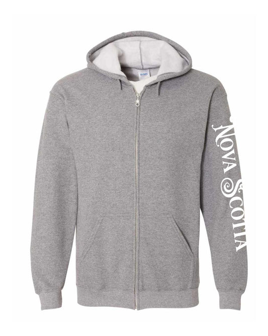 Made In Nova Scotia ( White Lettering) Left Chest and Back zip-hoodie