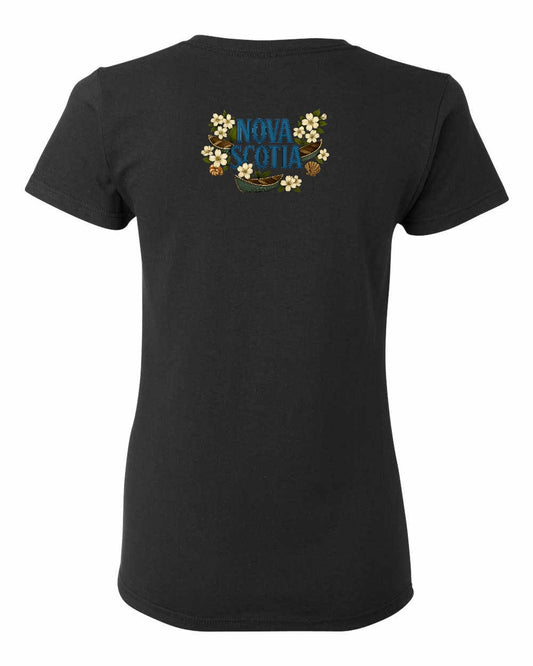 Nova Scotia Flowers Left Chest and Back womens-tee