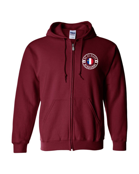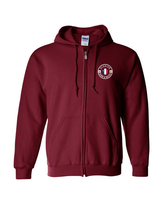 Acadian Born and Raised Acadian Flag Center - Left Chest and Back Zip Hoodie