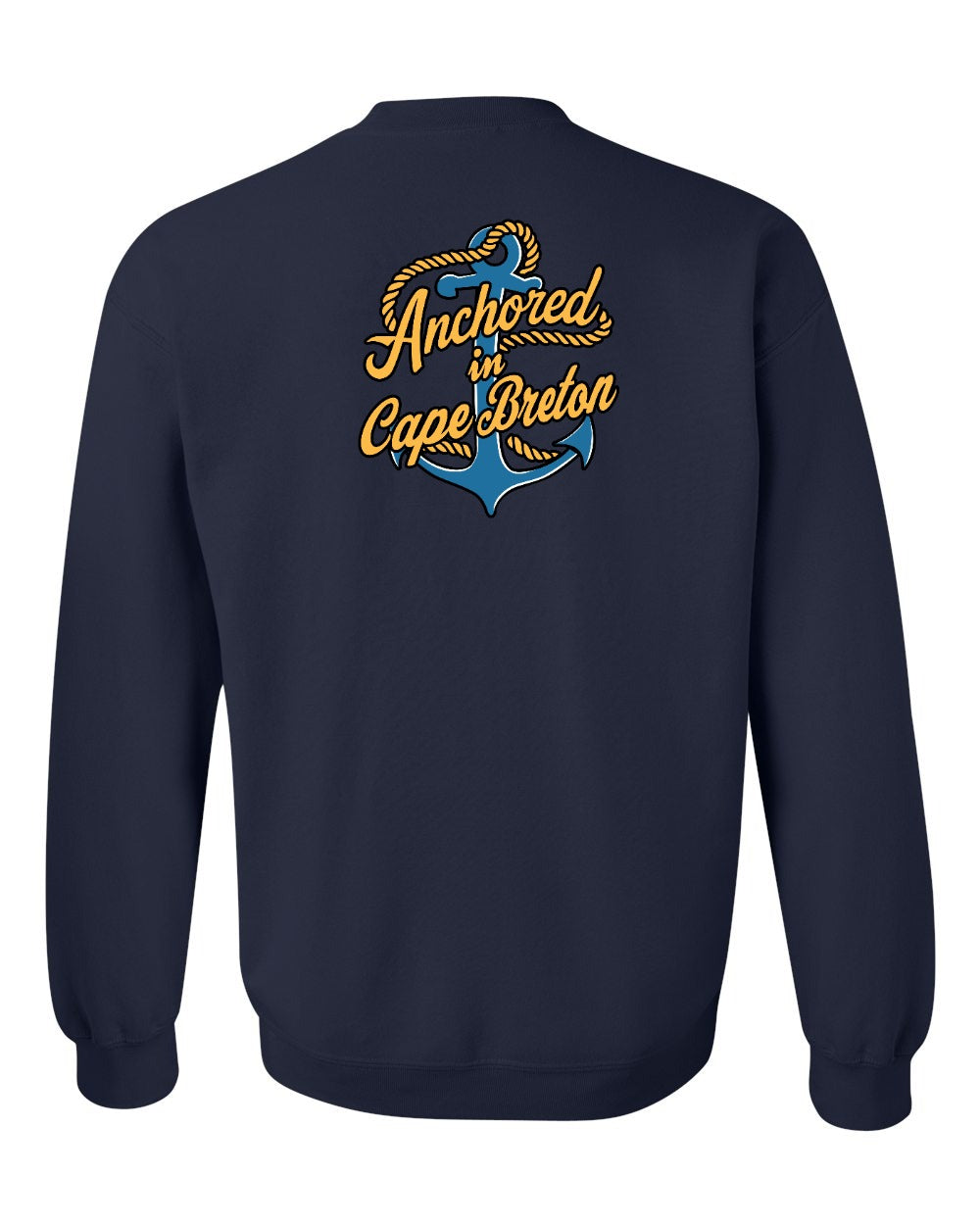 Anchored in Cape Breton (New Design) Left Chest and Back Crewneck Sweatshirt