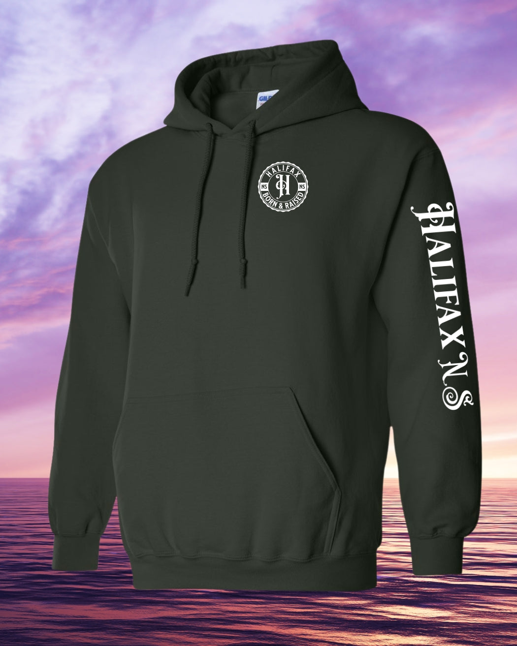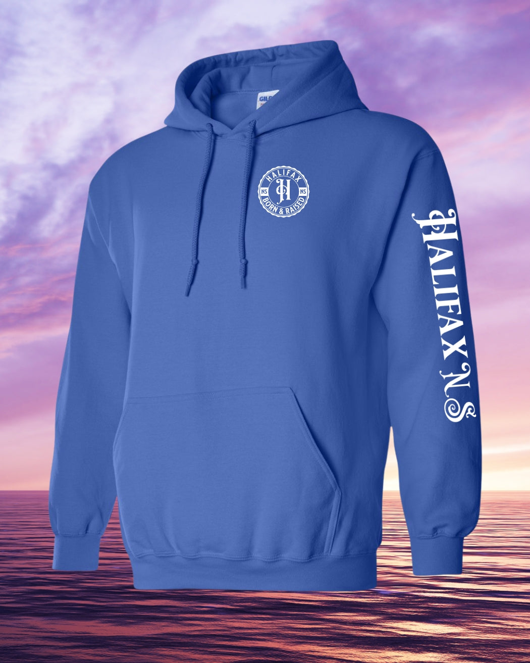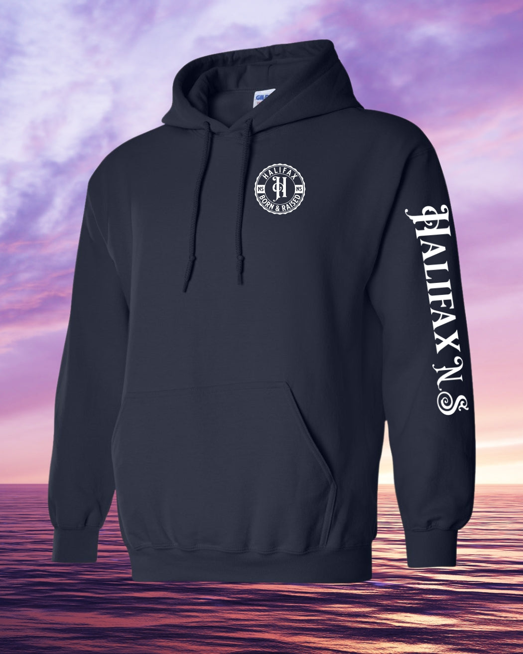 Born & Raised in Halifax left chest and sleeve Hoodie
