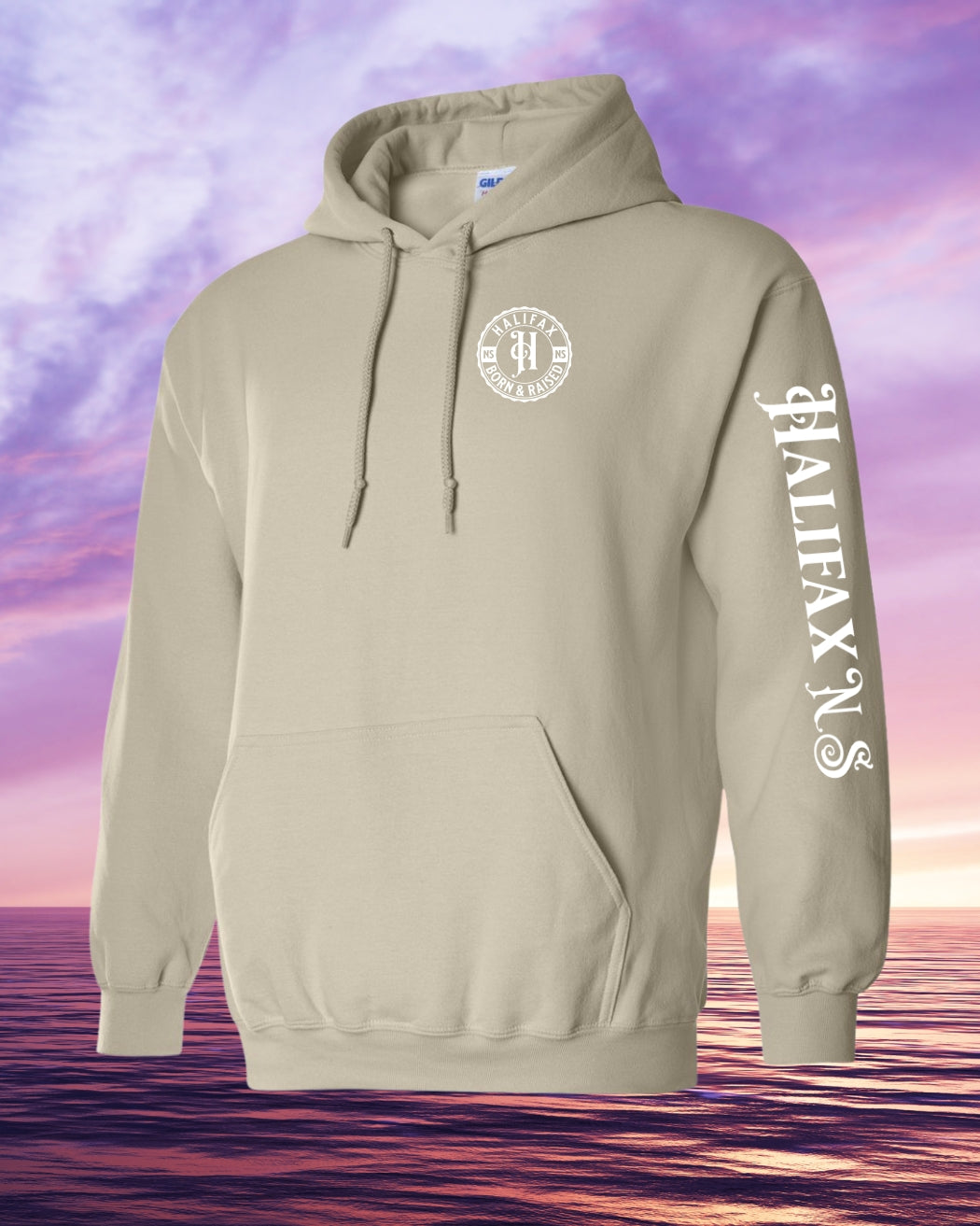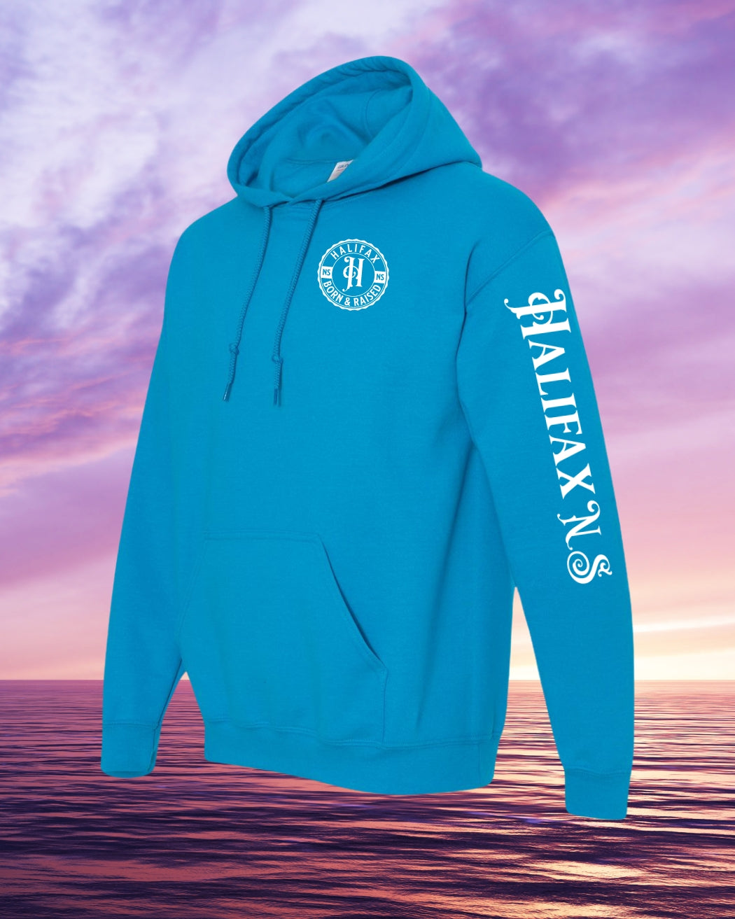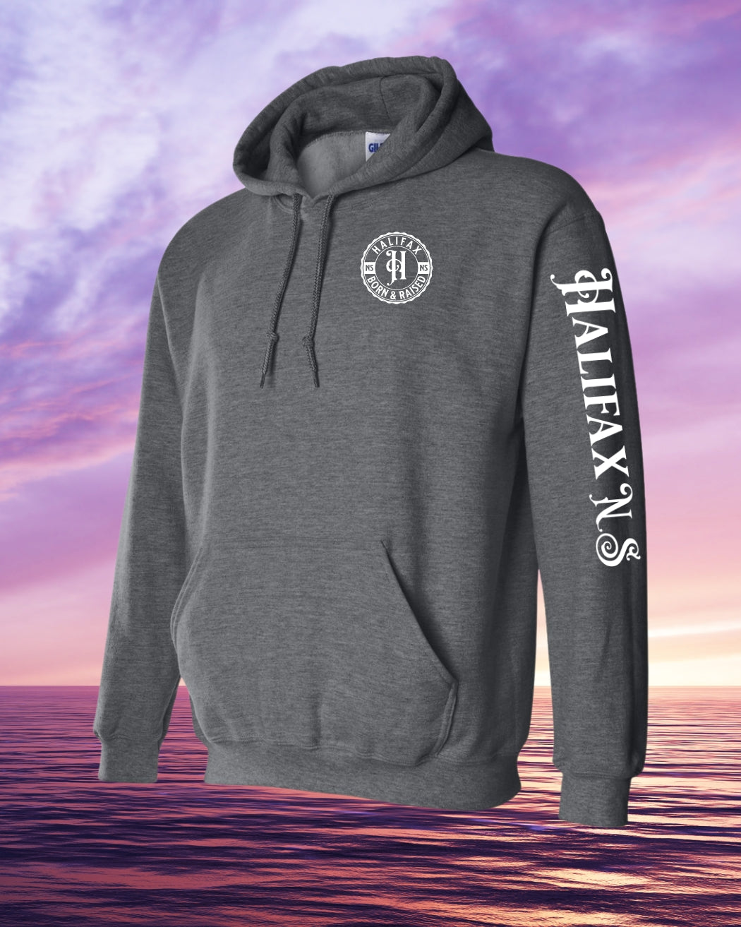 Born & Raised in Halifax left chest and sleeve Hoodie
