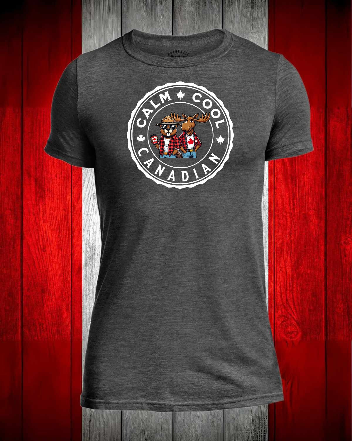 Calm Cool Canadian Beaver and Moose Full Front Men's Stanfield's Tee