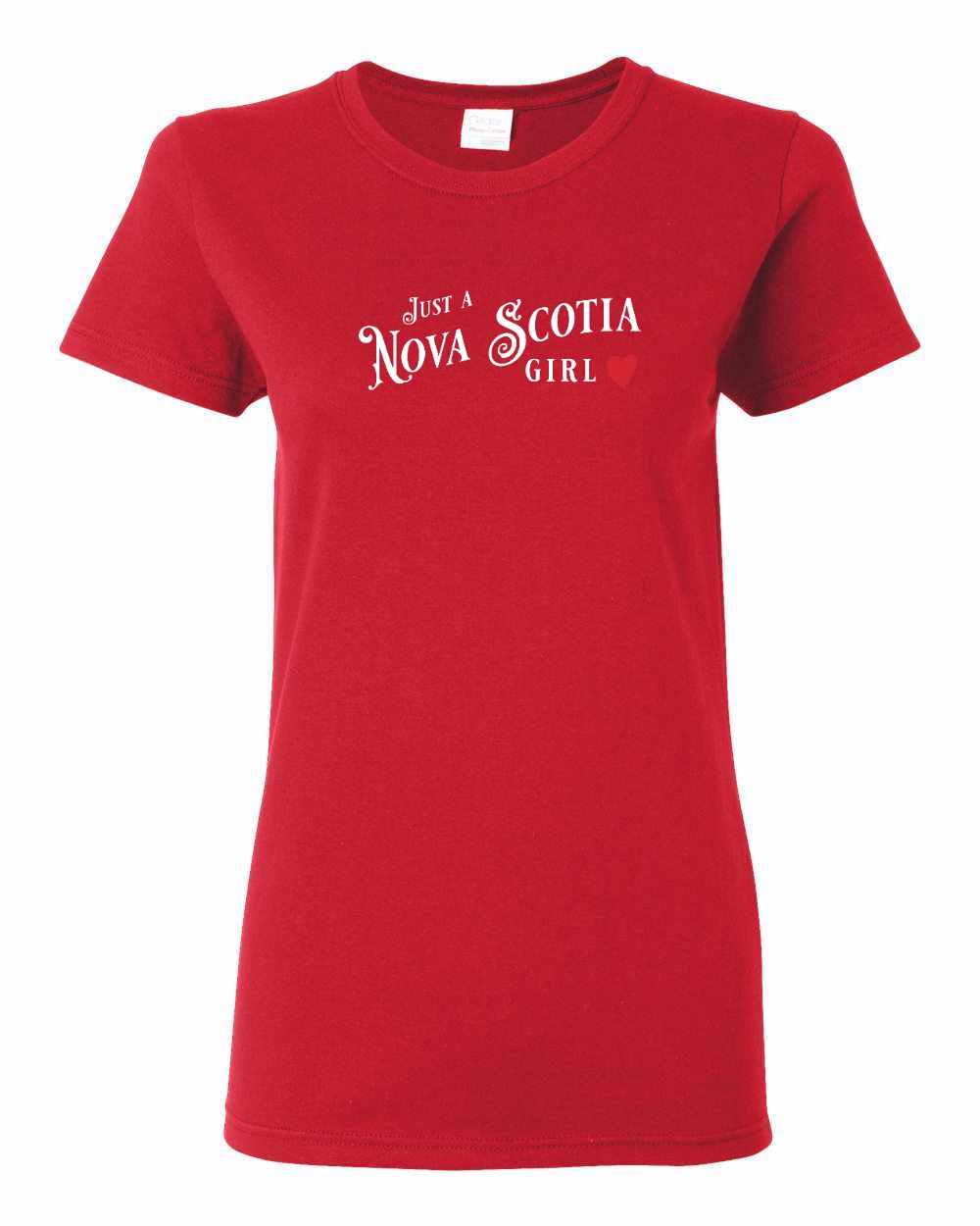 Just a Nova Scotia Girl Red Heart Full womens-tee