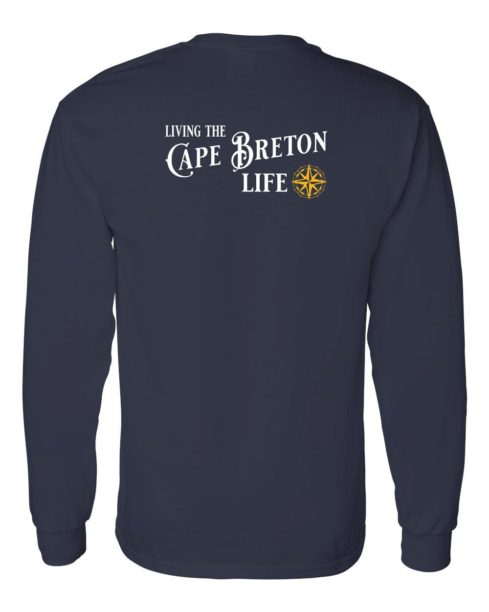 Living the Cape Breton Life yellow Left Chest and Back Long Sleeve Tee