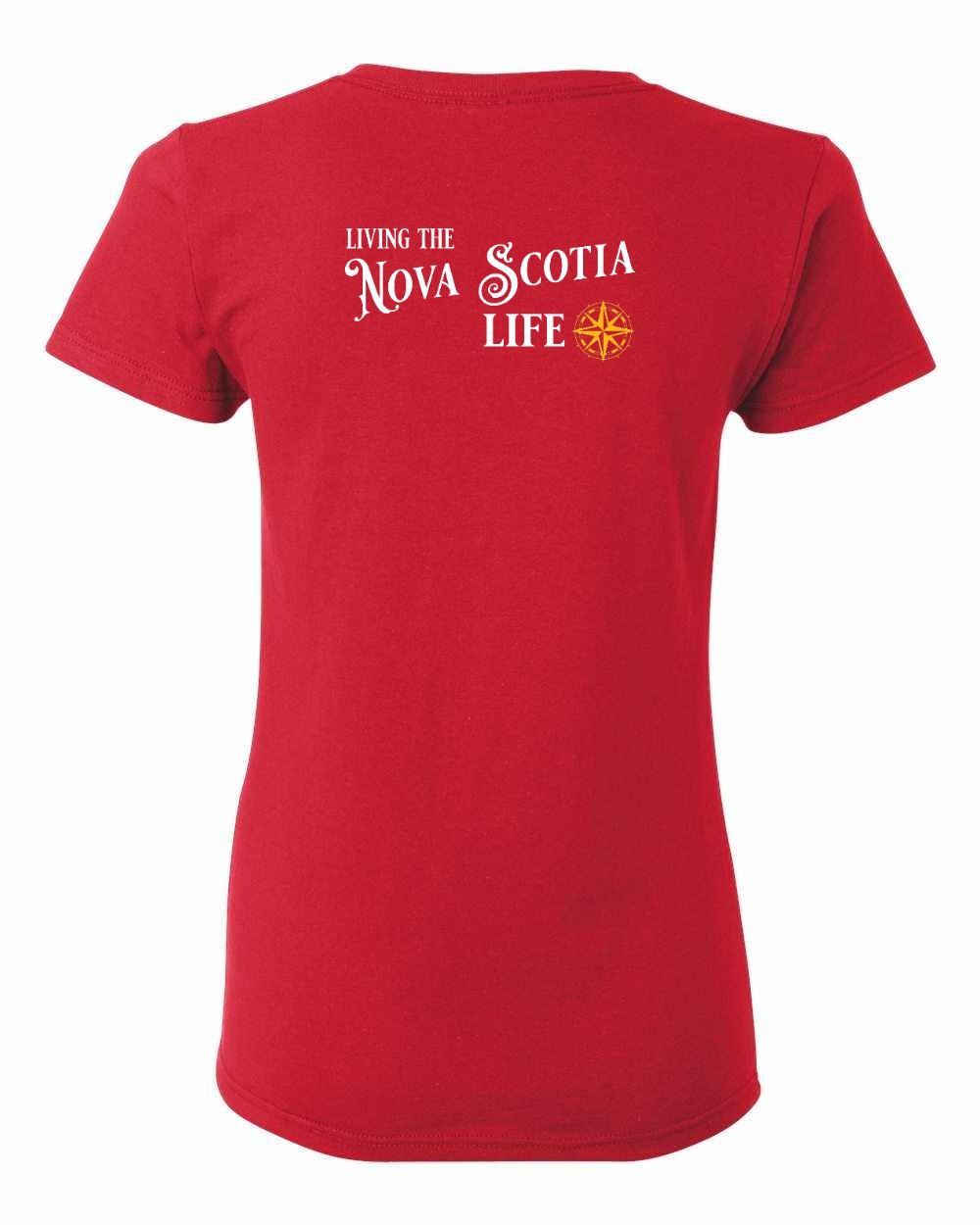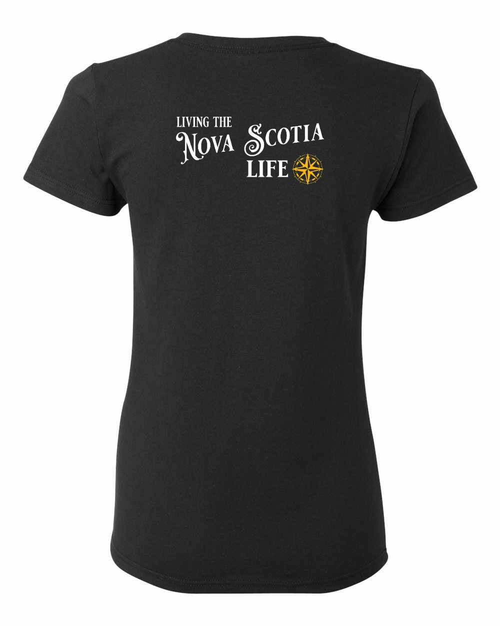 Living the Nova Scotia Life yellow Left Chest and Back womens-tee