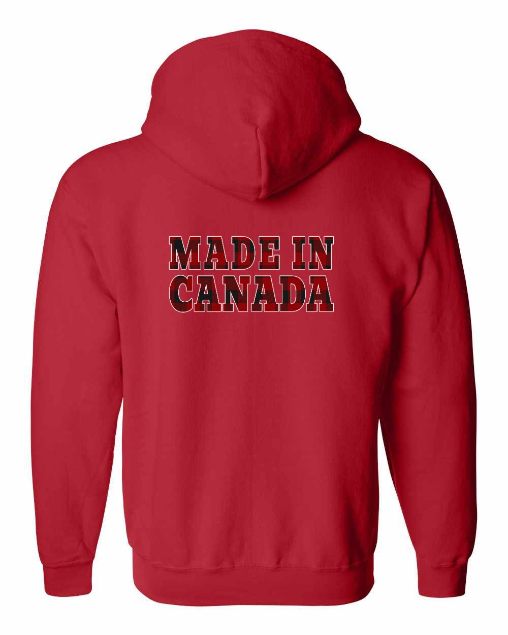 Made in Canada Plaid Background Left Chest and Back Zip Hoodie - Gildan Canada (sewn Internationally)