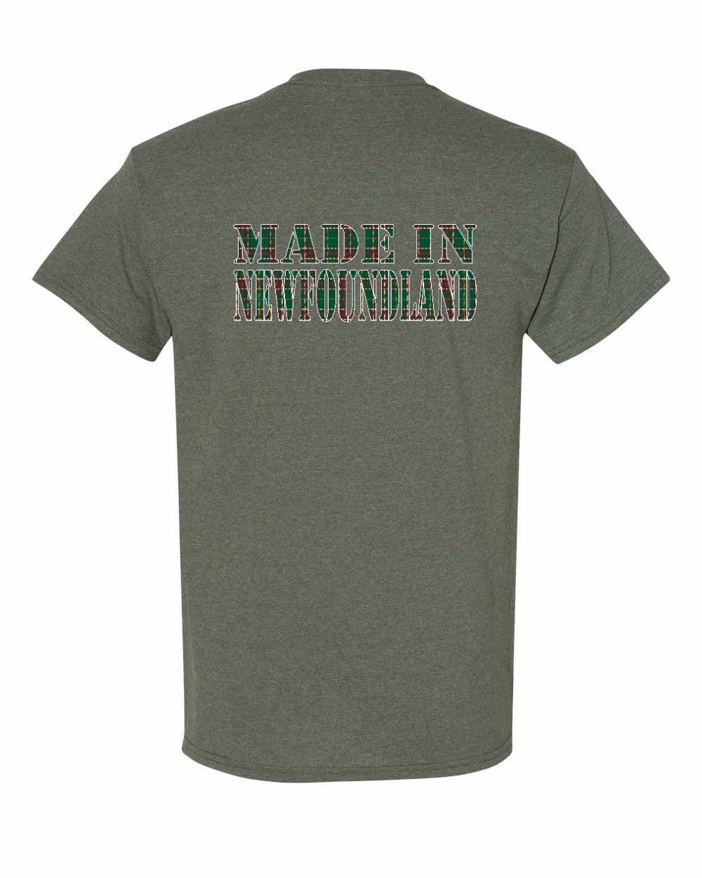 Made In Newfoundland ( Tartan Lettering) Left Chest and Back Men's Tee