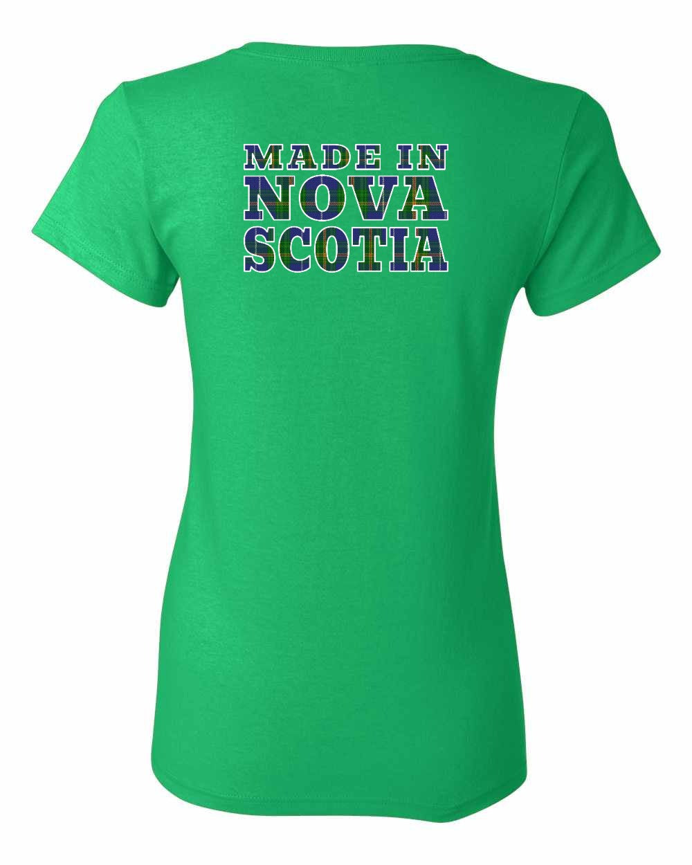 Made In Nova Scotia ( Tartan Lettering) Left Chest and Back womens-tee