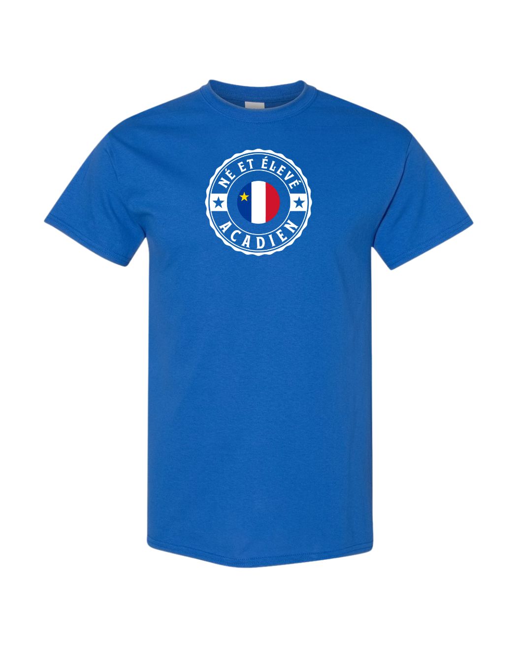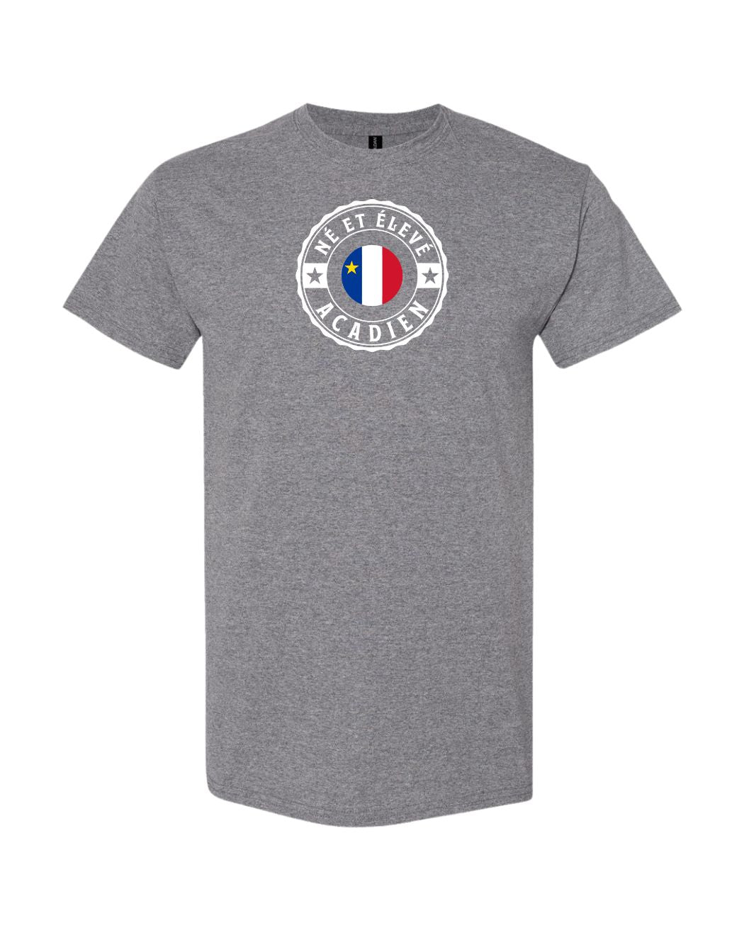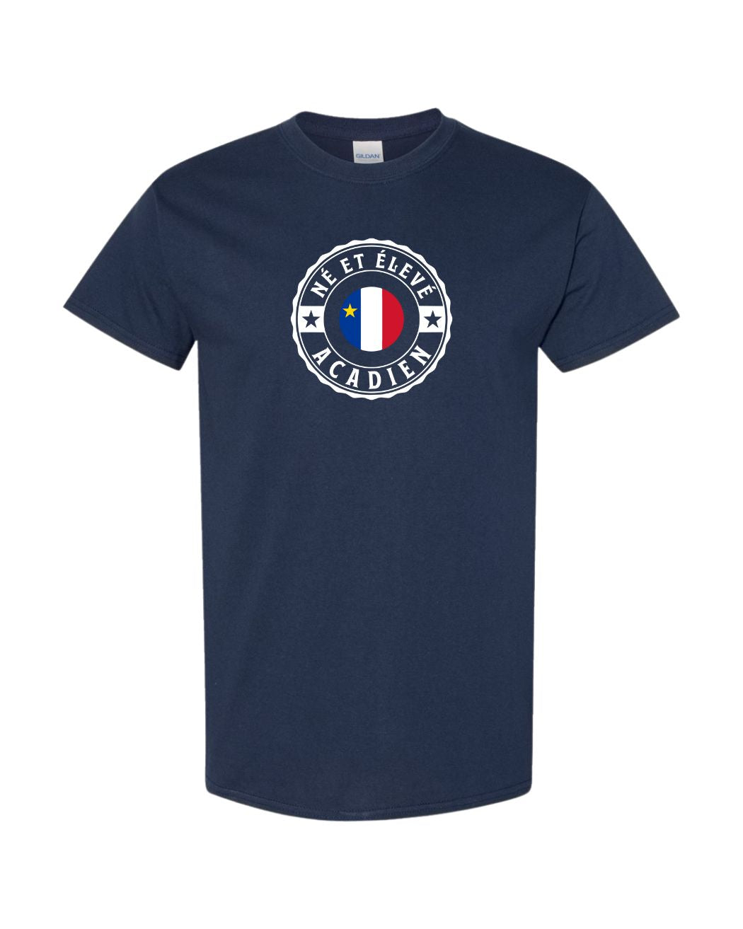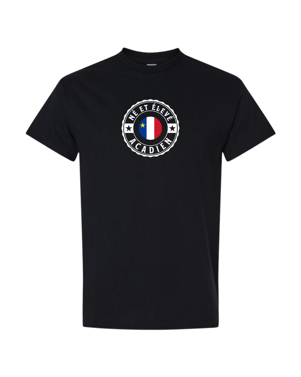 Ne Et Eleve Acadien with Acadian Flag Center Full Front Men's Tee