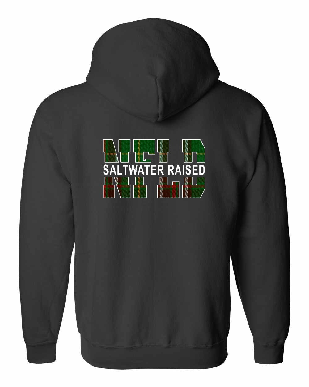 Newfoundland NFLD Saltwater Raised Left Chest and Back Zip Hoodie Printed NOT STITCHED