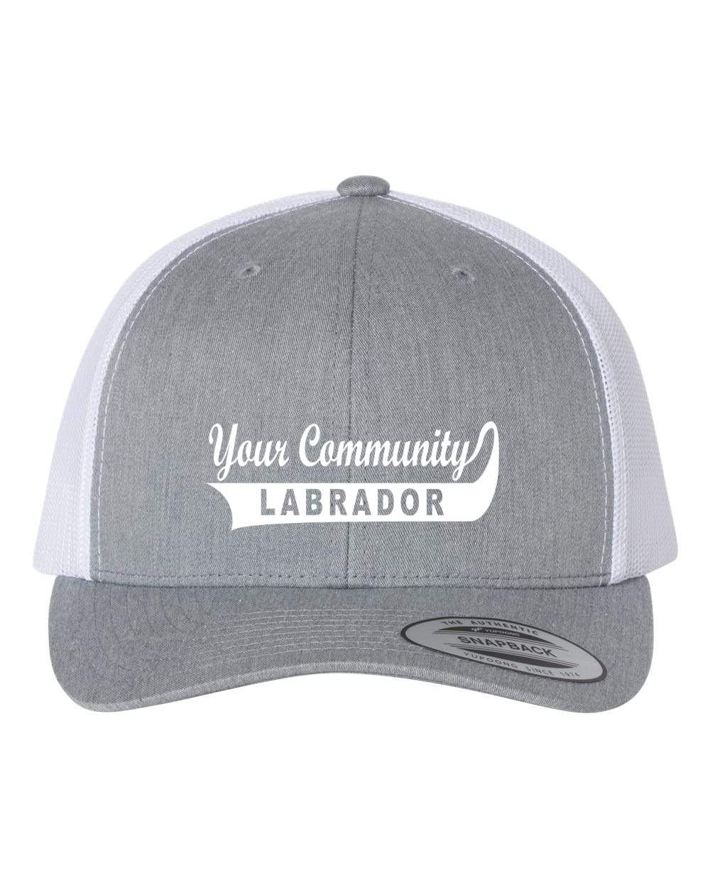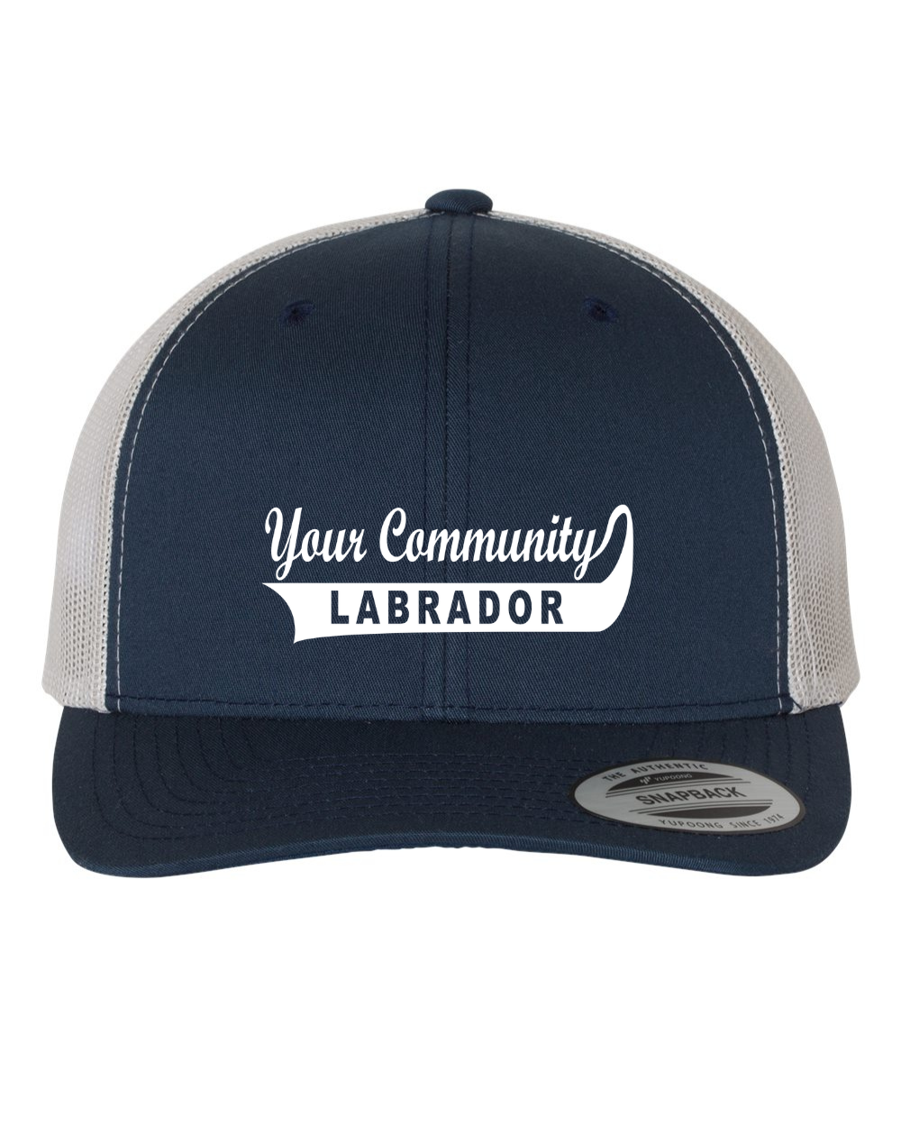 This retro trucker cap features a bold, vintage-style swoop design printed front and centre with your custom community name—because pride in where you're from never goes out of style. Whether it’s a well-known spot or a hidden gem, this hat brings local love to life in a design that looks great.